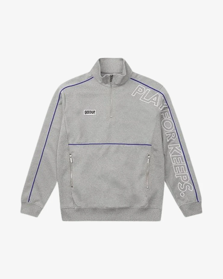 SKU: N/A Categories: Jumper, Sweatshirt Tag: GEEDUP PLAY FOR KEEPS QUARTER ZIP GREY BLUE